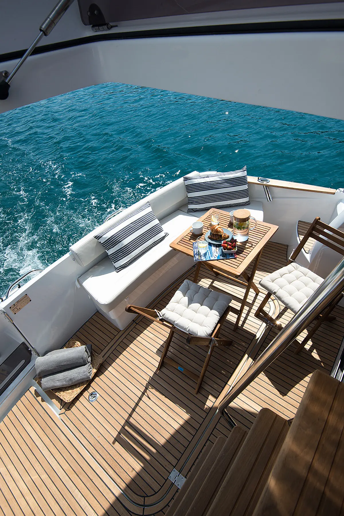 Bimini, Cockpit cushions, Dinghy, Electric winches, Teak deck, Air condition, Generator