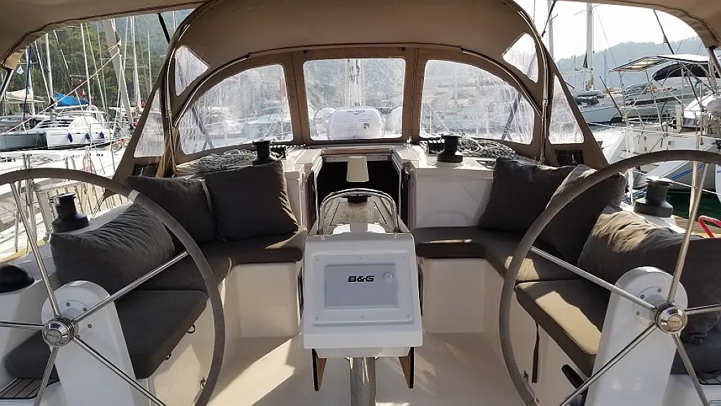 Bimini, Cockpit cushions, Sprayhood, Outboard engine, Solar Panels, Inverter, Dinghy