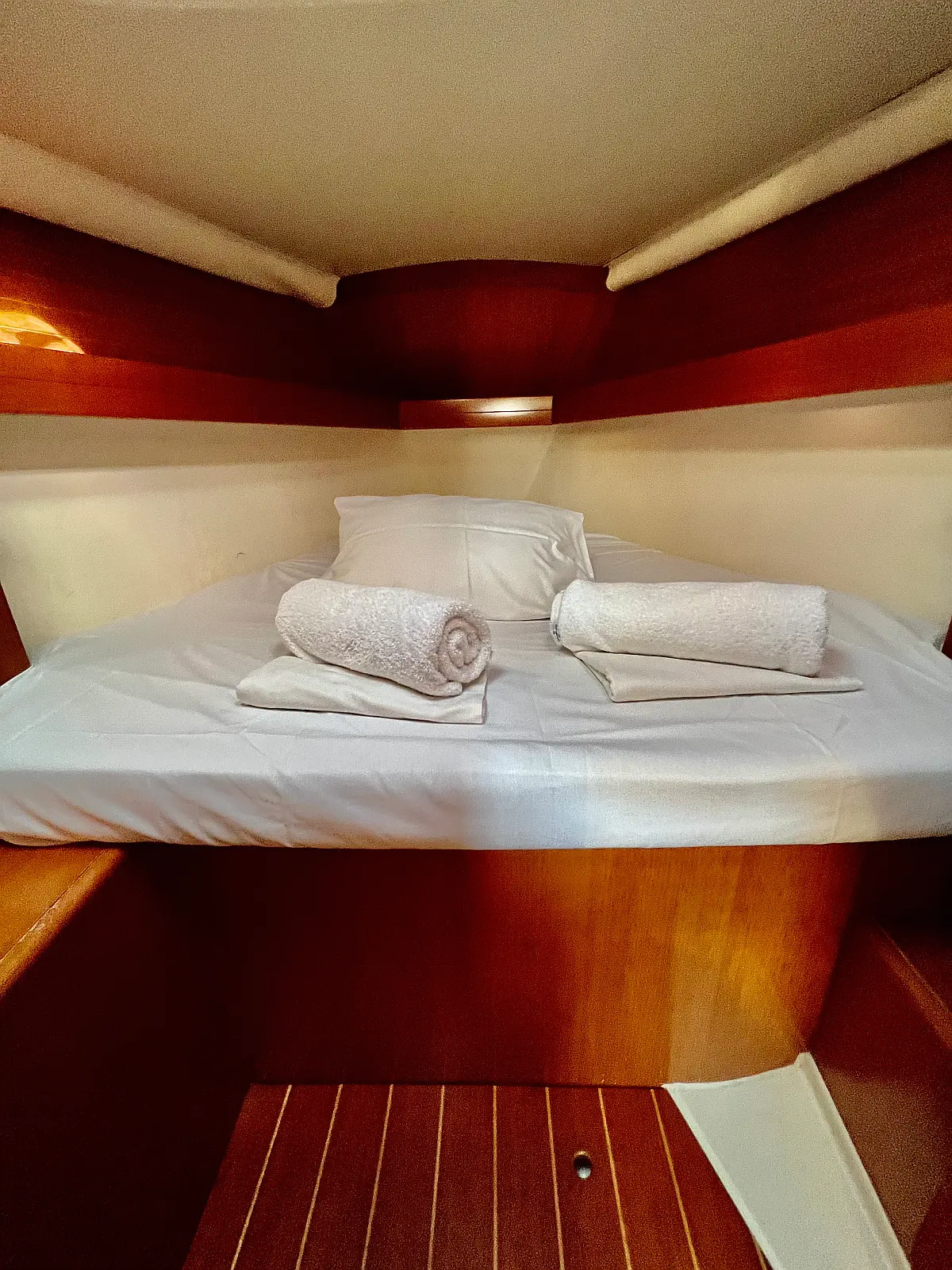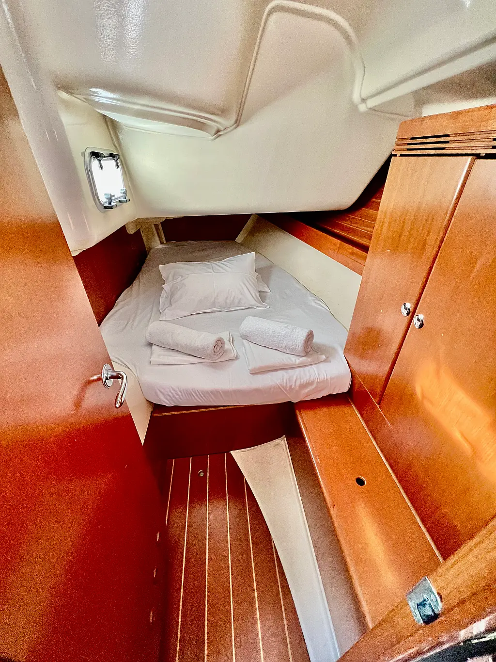 Solar Panels, Bimini, Cockpit cushions, Sprayhood, Cockpit speakers, Dinghy, Outboard engine, Coffee maker, Refrigerator