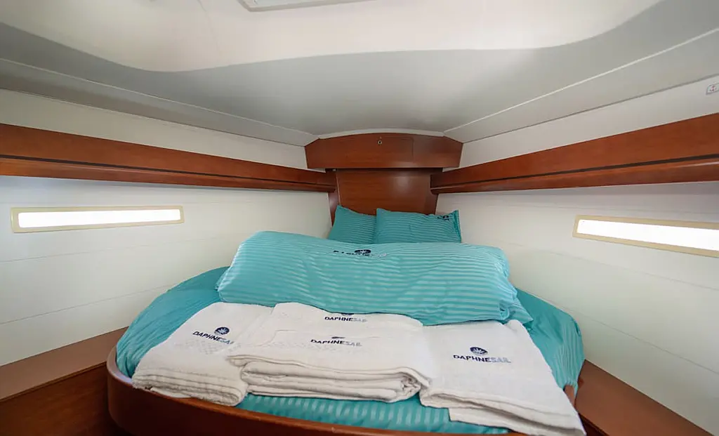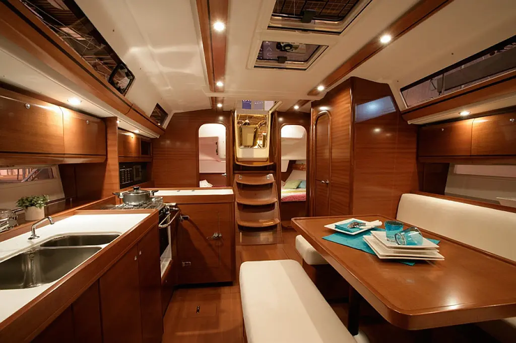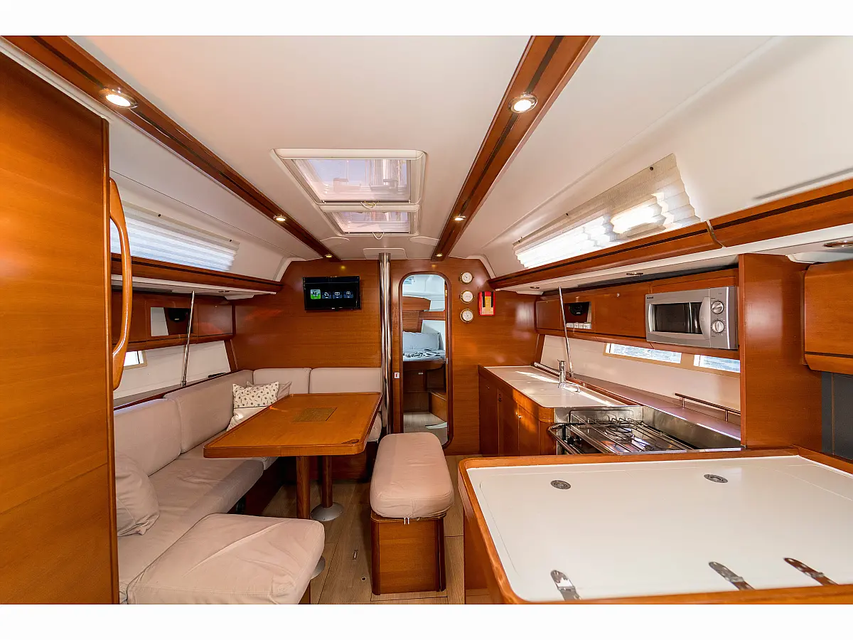 Bimini, Cockpit cushions, Dinghy, Sprayhood, Swimming platform, Outboard engine, Holding tank, Inverter, Solar Panels, Heating, Cockpit speakers, Refrigerator