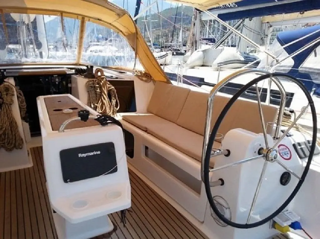 Bimini, Cockpit cushions, Dinghy, Sprayhood, Swimming platform, Outboard engine, Holding tank, Inverter, Solar Panels, Heating, Cockpit speakers, Refrigerator