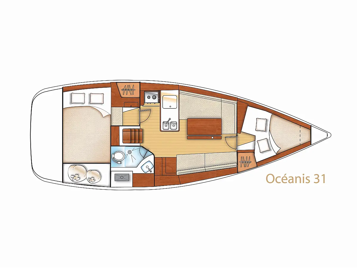 Electric toilet, Dinghy, Outboard engine, Bimini, Cockpit speakers, Refrigerator, Sprayhood