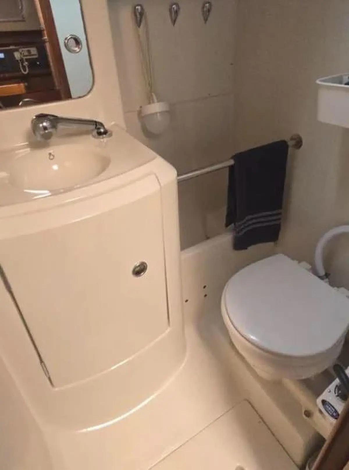 Bimini, Refrigerator, Outboard engine, Solar Panels, Electric toilet, Inverter