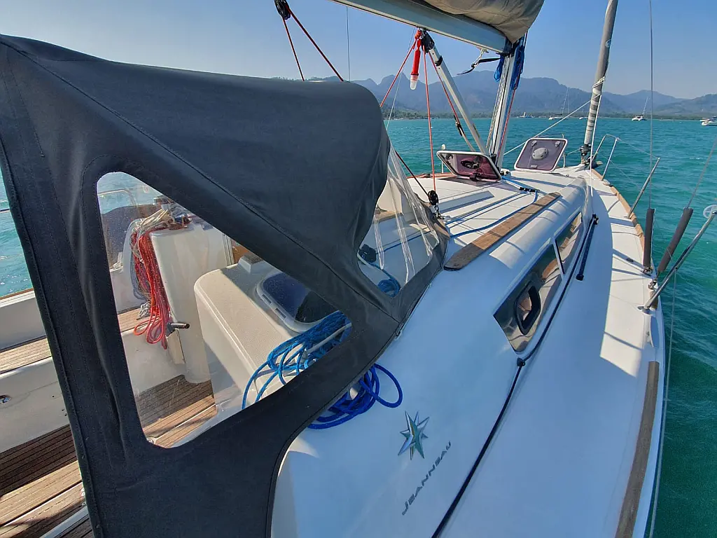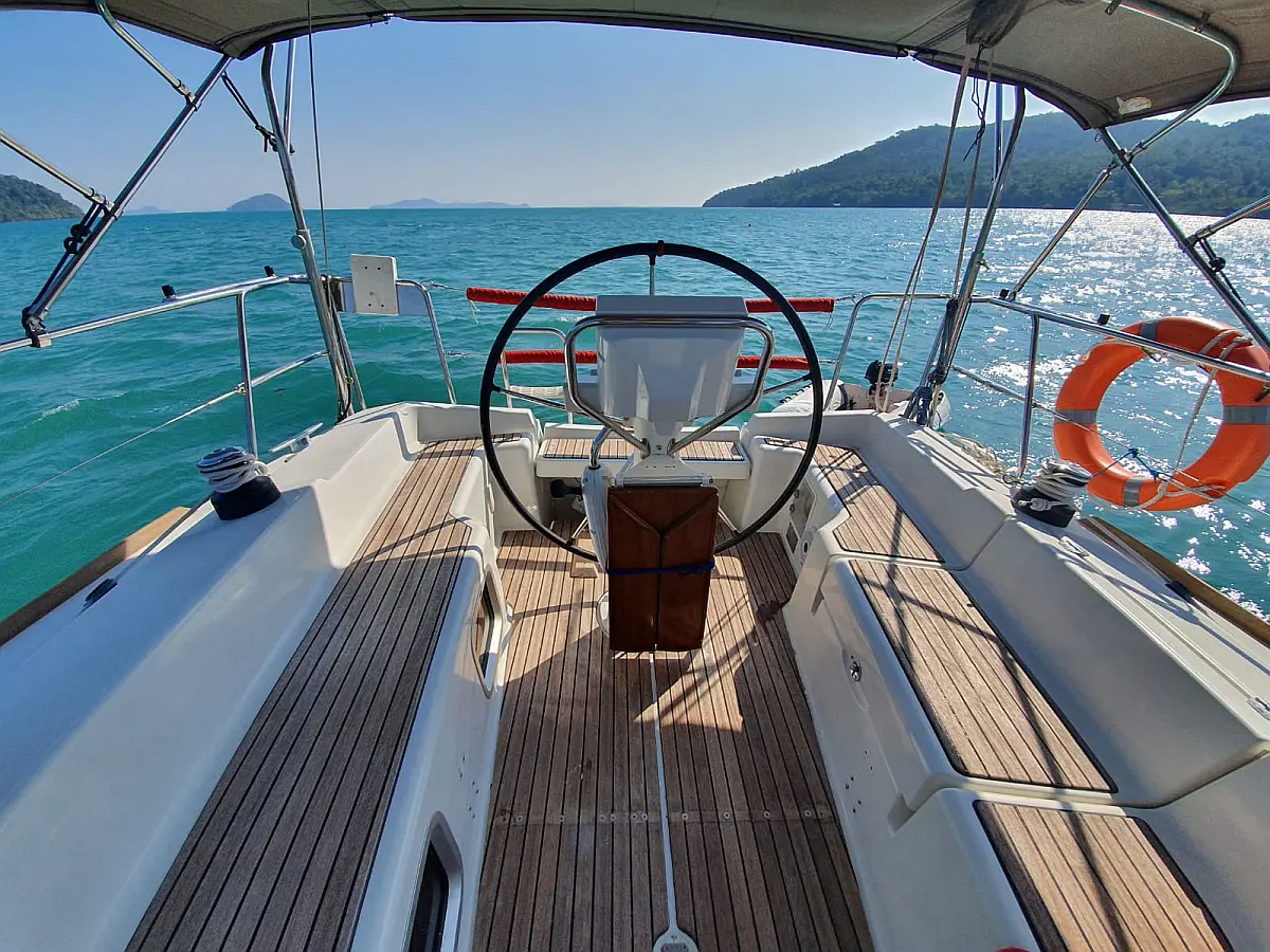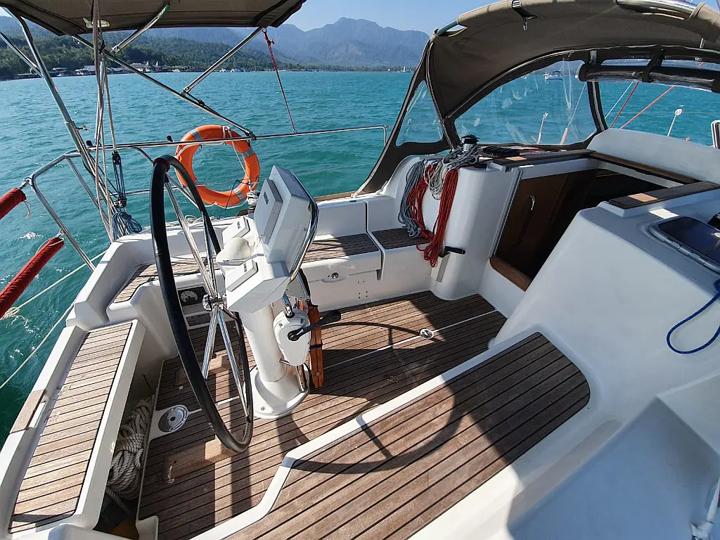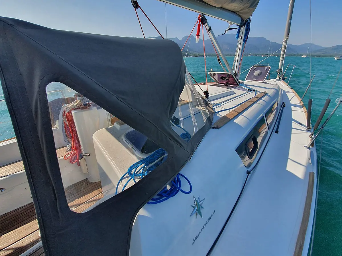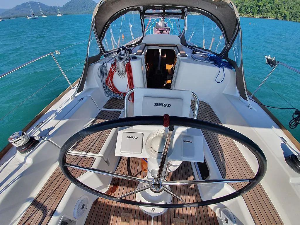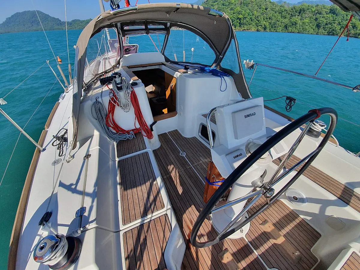 Cockpit speakers, Bimini, Refrigerator, Solar Panels, Outboard engine, Dinghy, Barbecue grill in cockpit