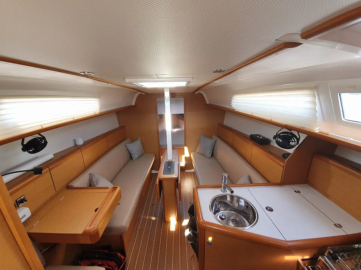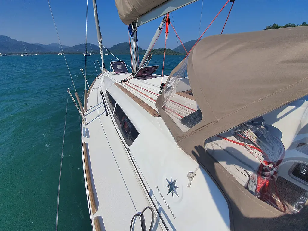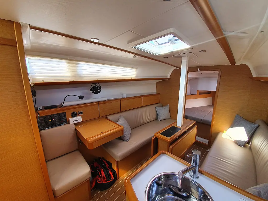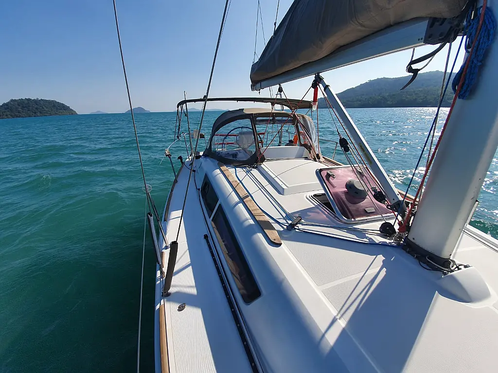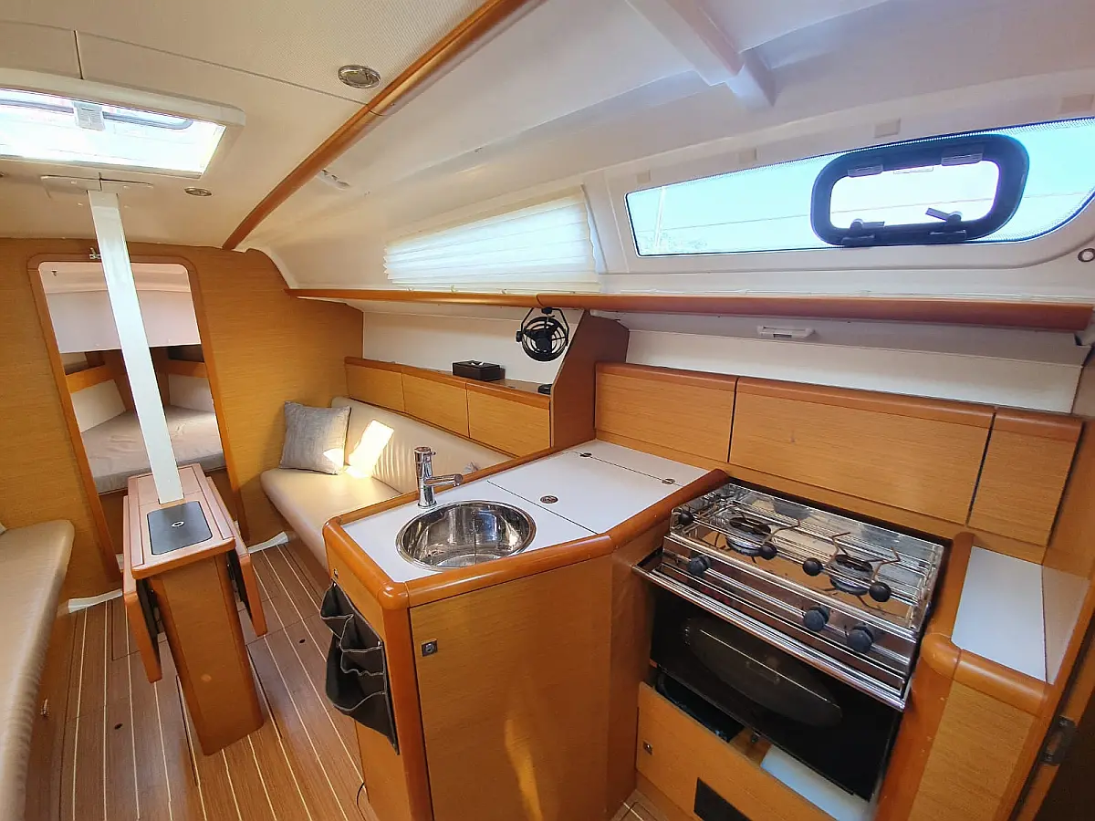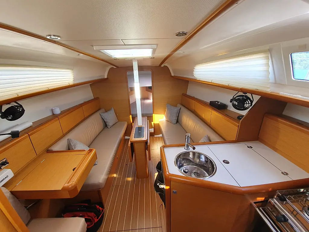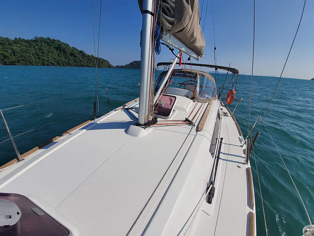 Cockpit speakers, Bimini, Refrigerator, Solar Panels, Outboard engine, Dinghy, Barbecue grill in cockpit