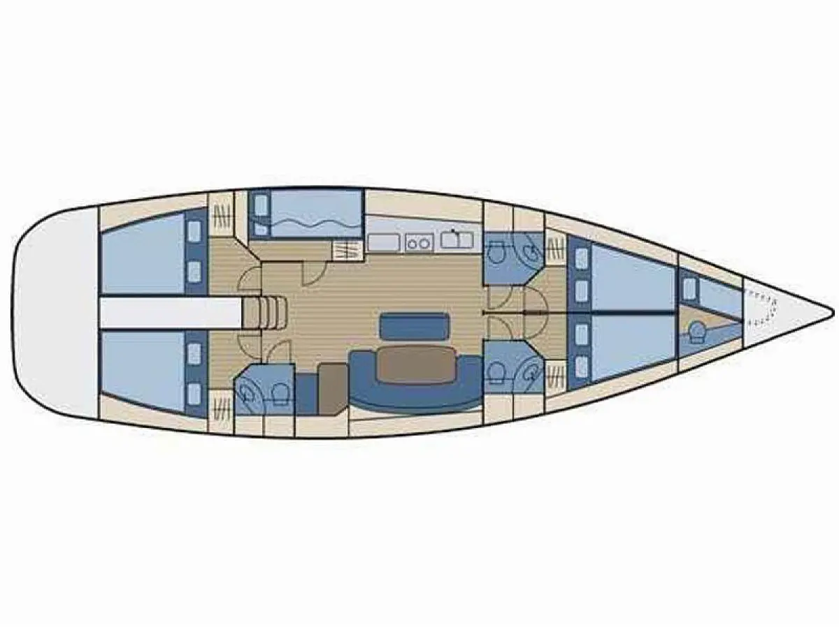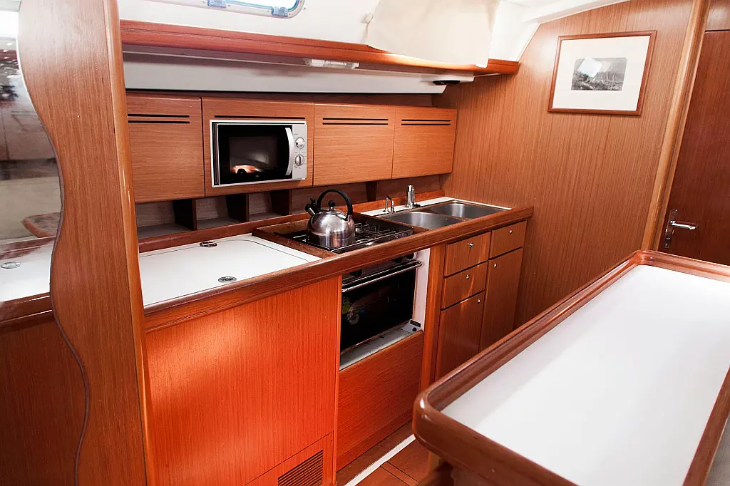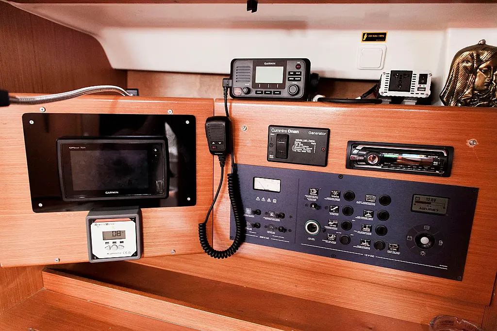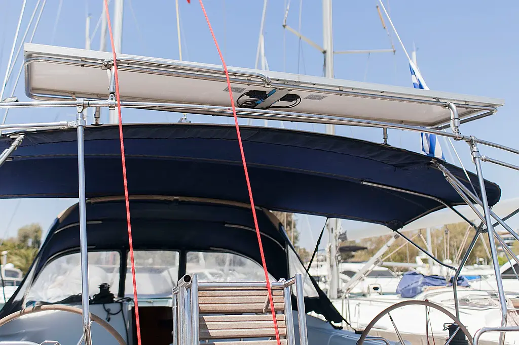 Bimini, Refrigerator, Dinghy, Electric winches, Sprayhood, Outboard engine, Solar Panels