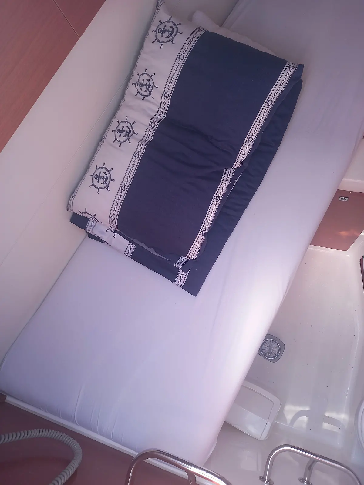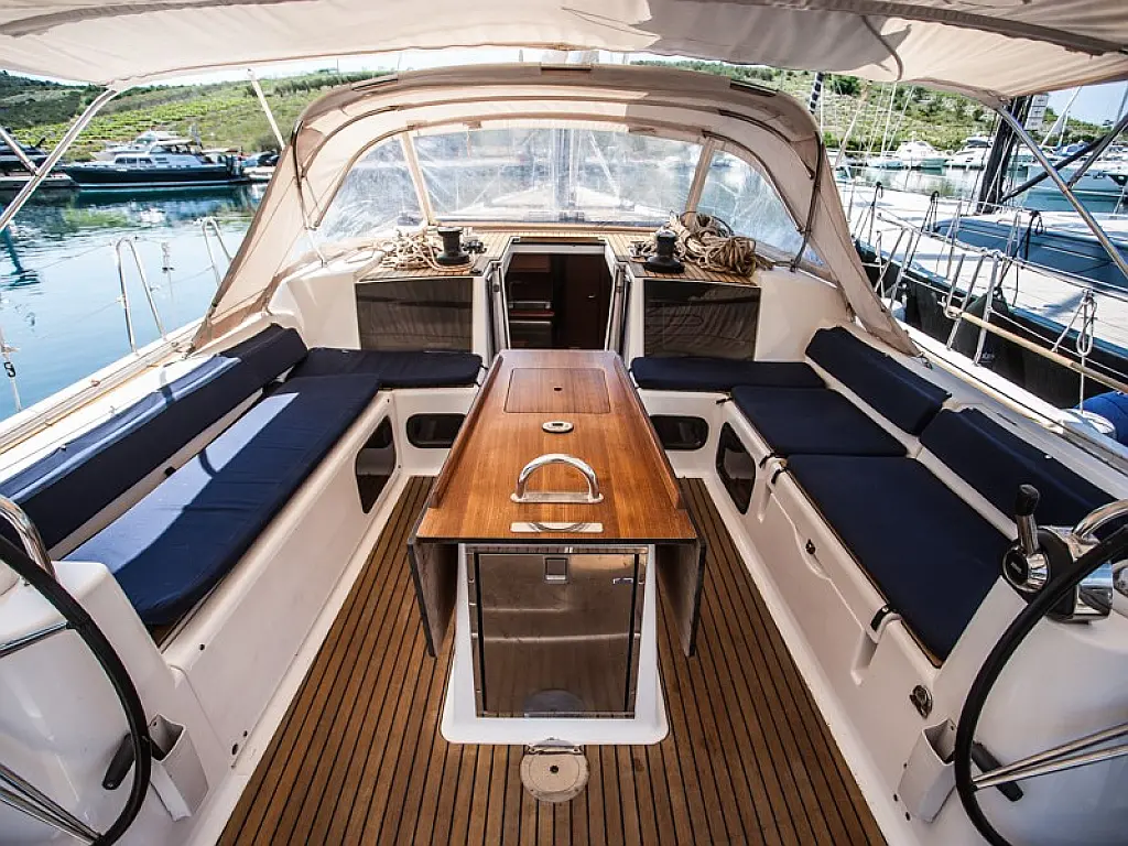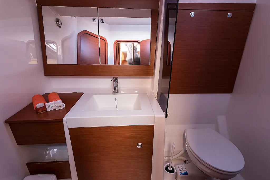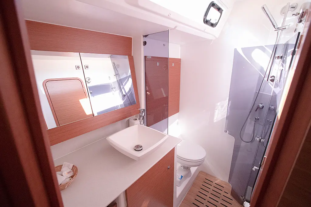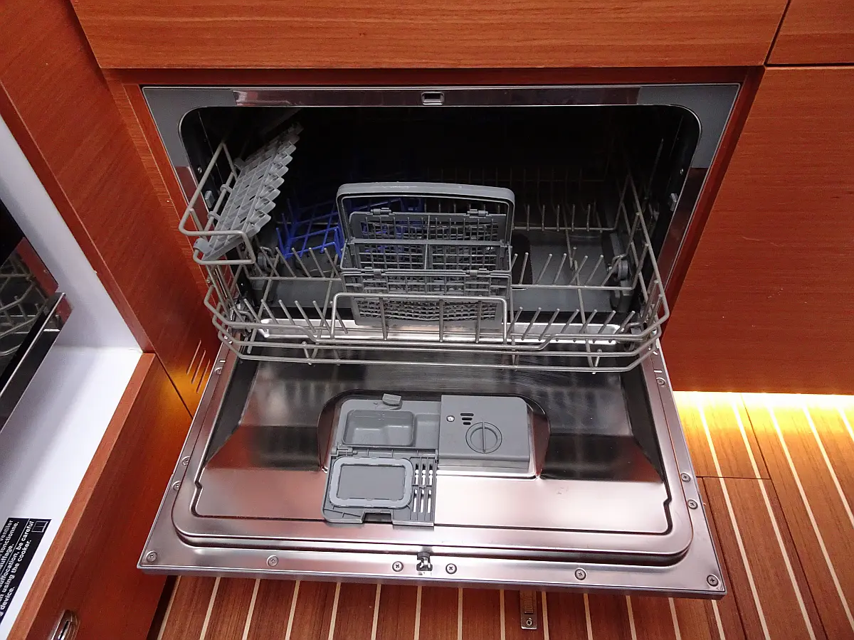 Refrigerator, Ice maker, Coffee maker, Holding tank, Inverter, Dishwasher, Air condition, Heating, Teak deck, Teak Cockpit, Hydraulic gangway, Sprayhood, Bimini, Generator, Electric toilet, Electric winches