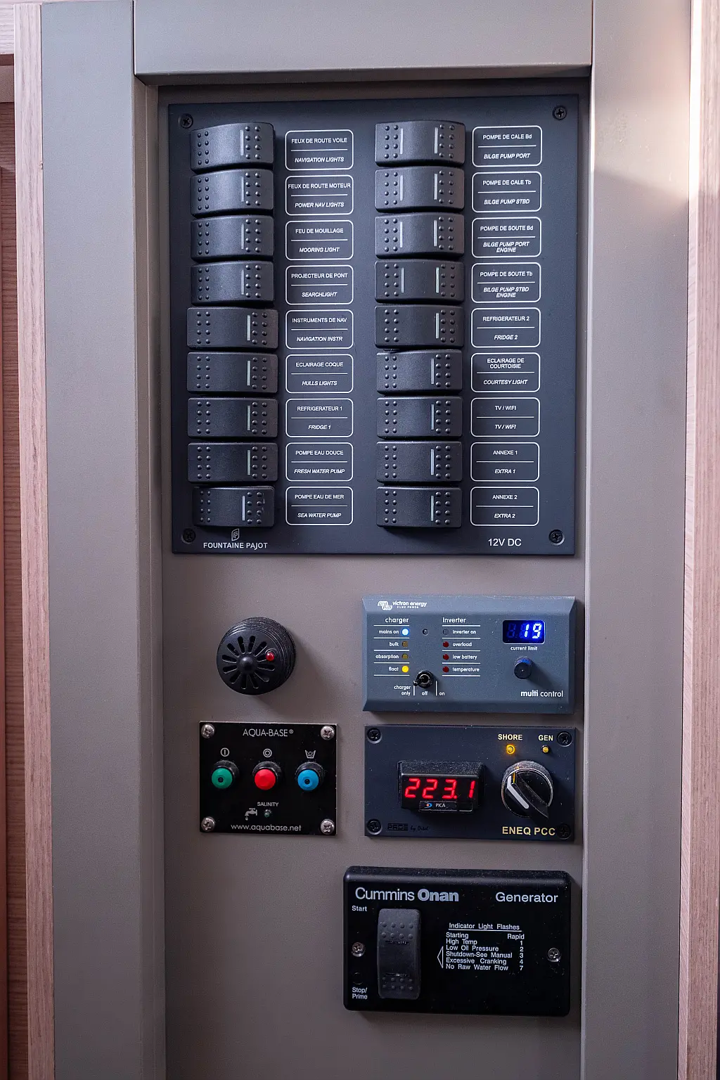 Refrigerator, Cockpit speakers, Electric winches, Dinghy, Air condition, Generator, Inverter, Electric toilet, Solar Panels, Water maker, Outboard engine, Cockpit cushions, Teak Cockpit
