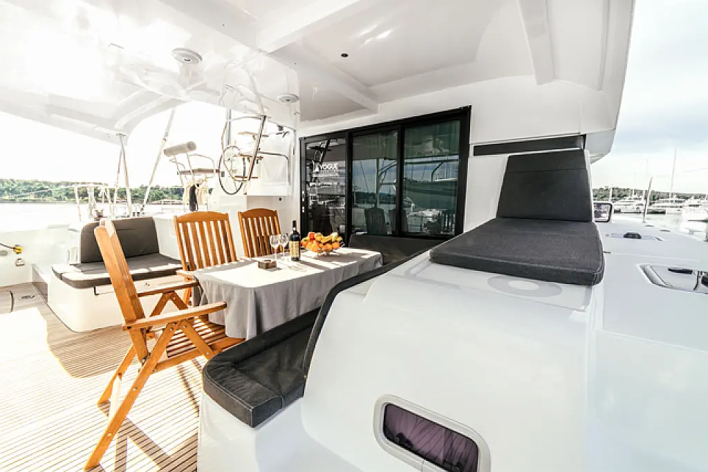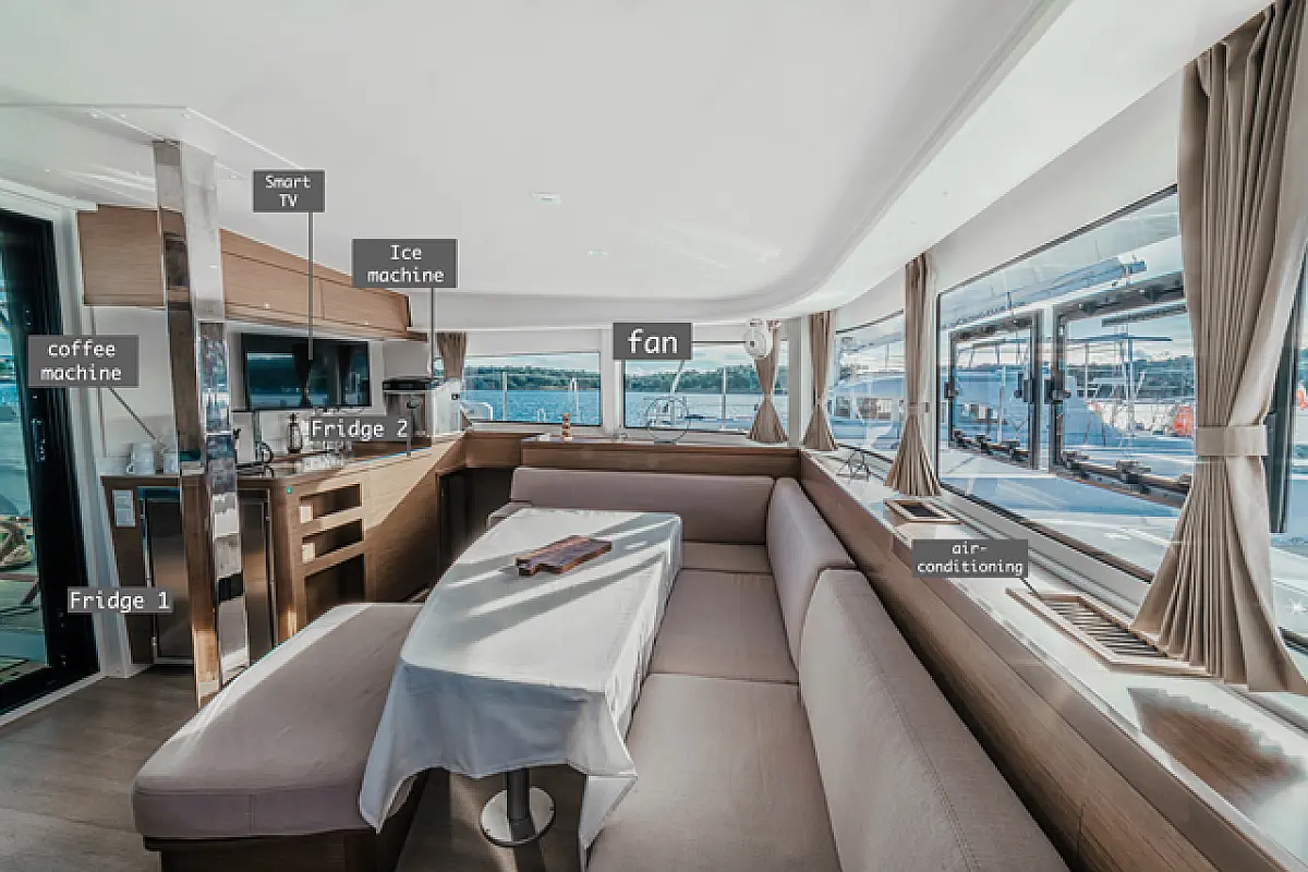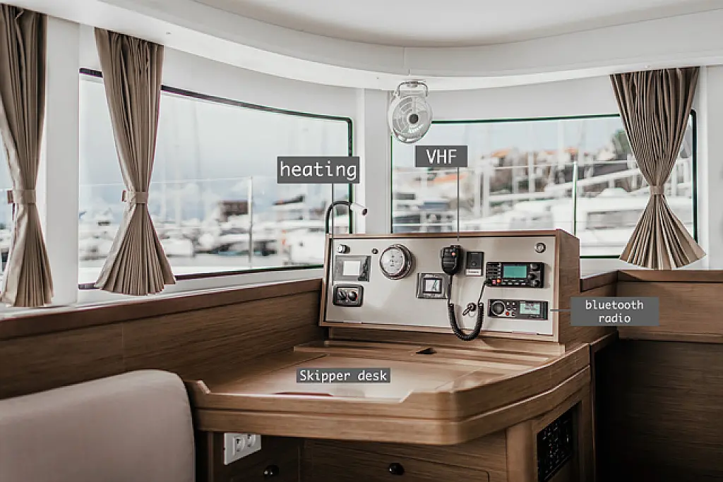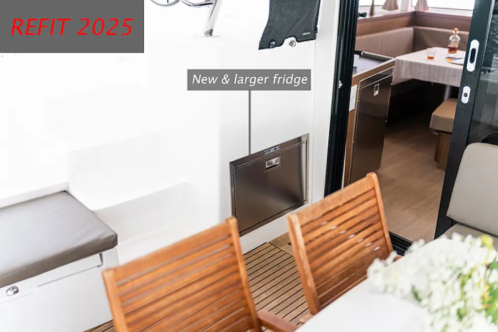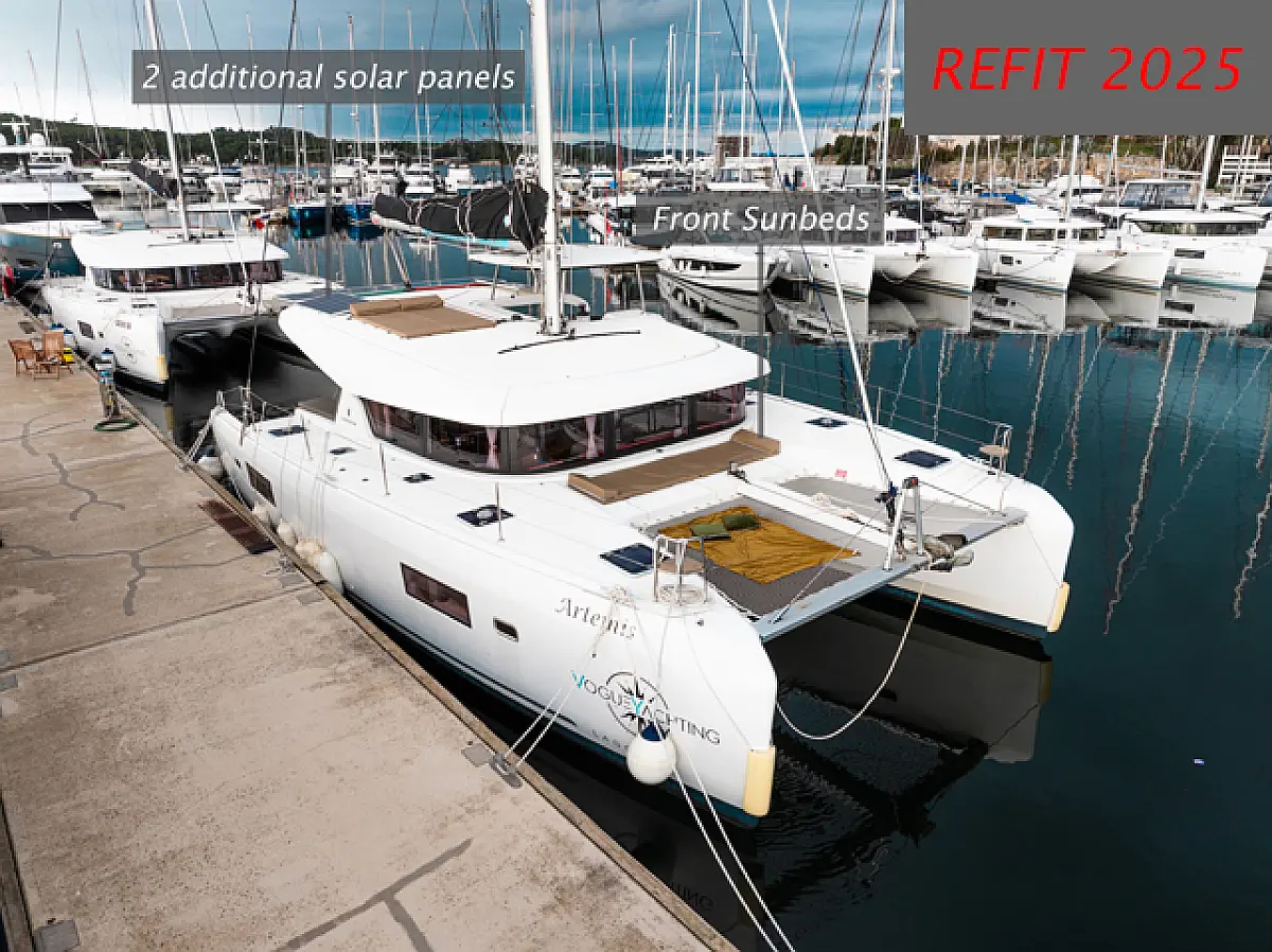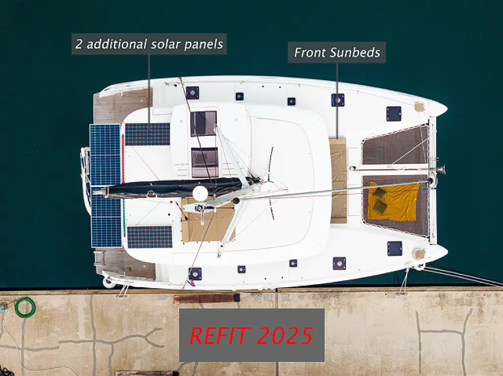 Air condition, Coffee maker, Cockpit cushions, Dinghy, Electric winches, Electric toilet, Ice maker, Holding tank, Inverter, Bimini, Solar Panels, Sprayhood, Teak Cockpit, Heating