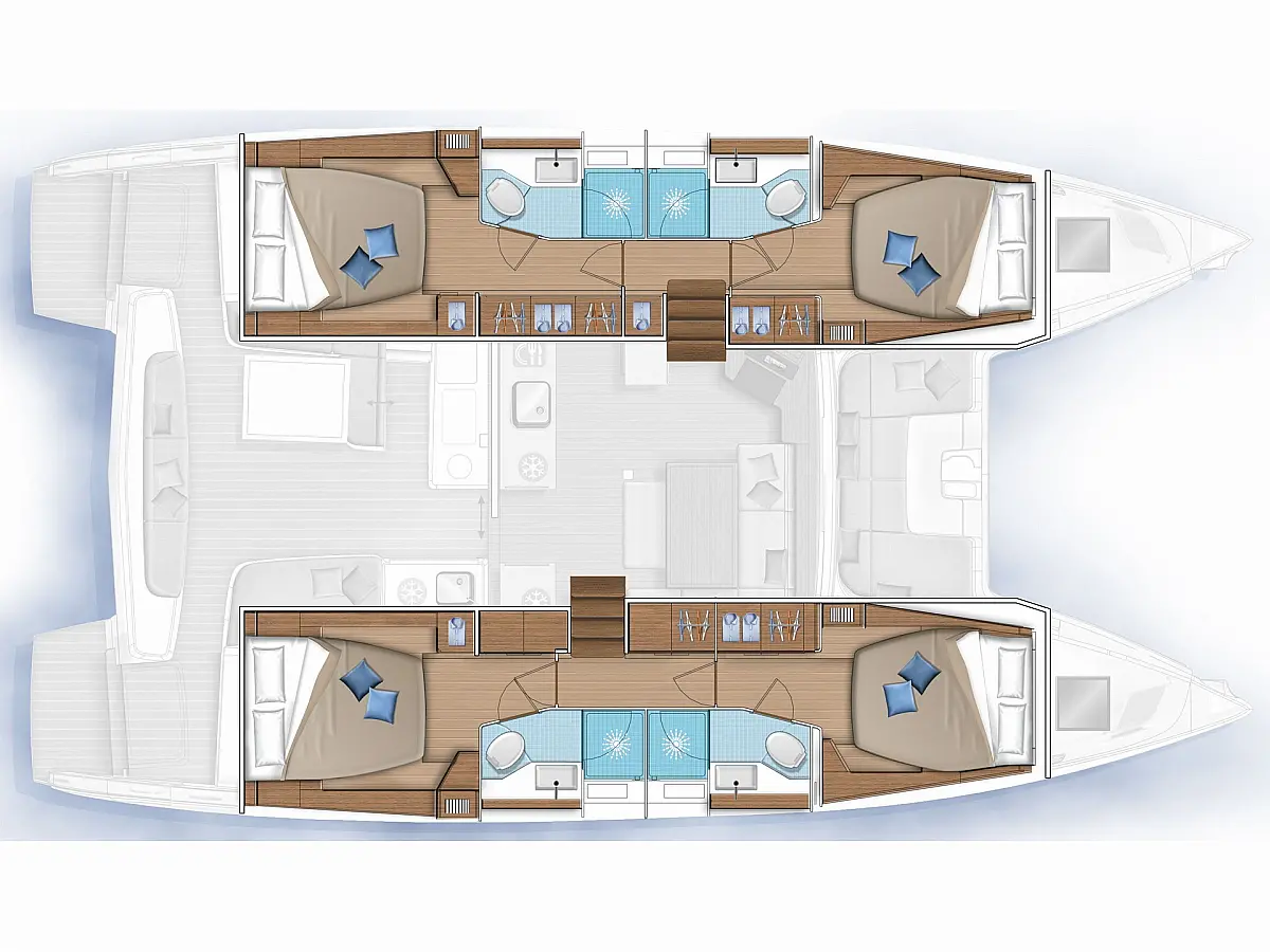 5 (4 ensuite bathrooms and 1 outside under the starboard cabin)