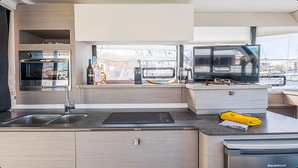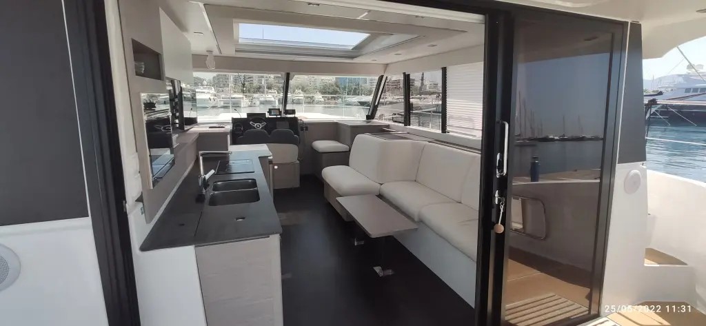Air condition, Barbecue grill in cockpit, Dinghy, Electric toilet, Electric winches, Coffee maker, Generator, Outboard engine, Solar Panels, Water maker