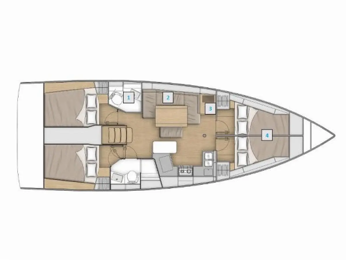 4 (4 double bed) + convertible table in salon