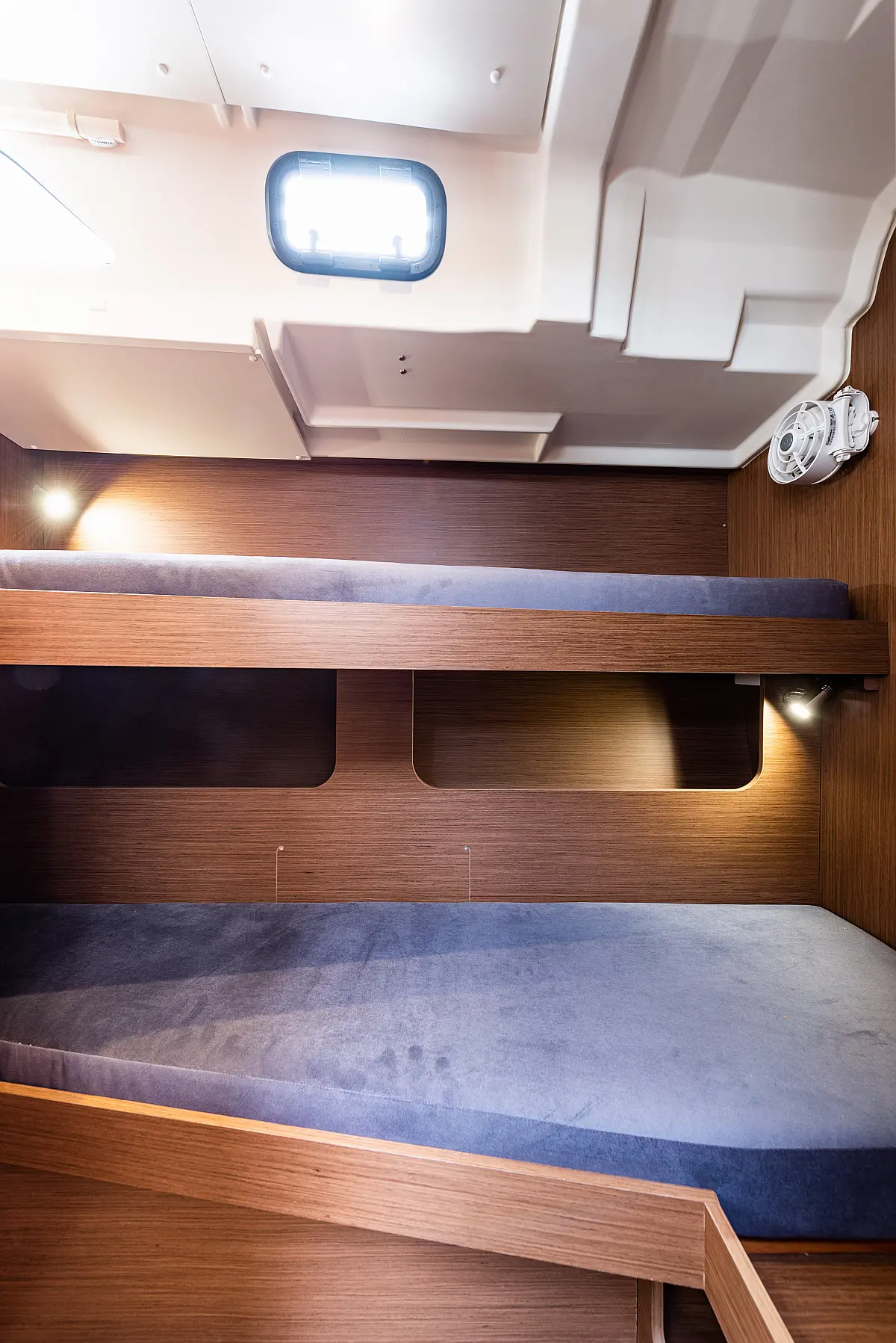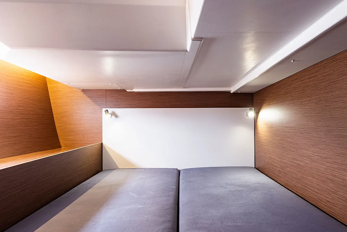 6 (4 double-bed cabins +1 with bunk beds +1 bow cabin)